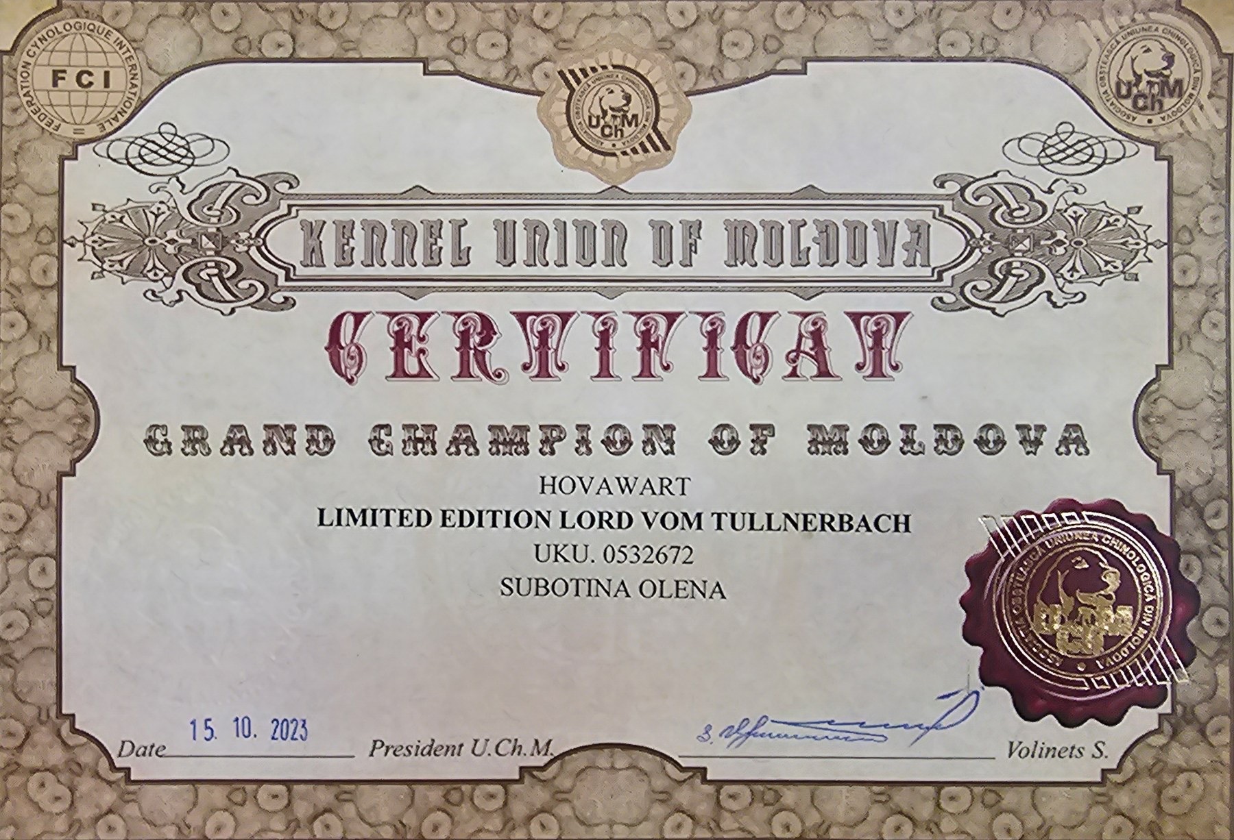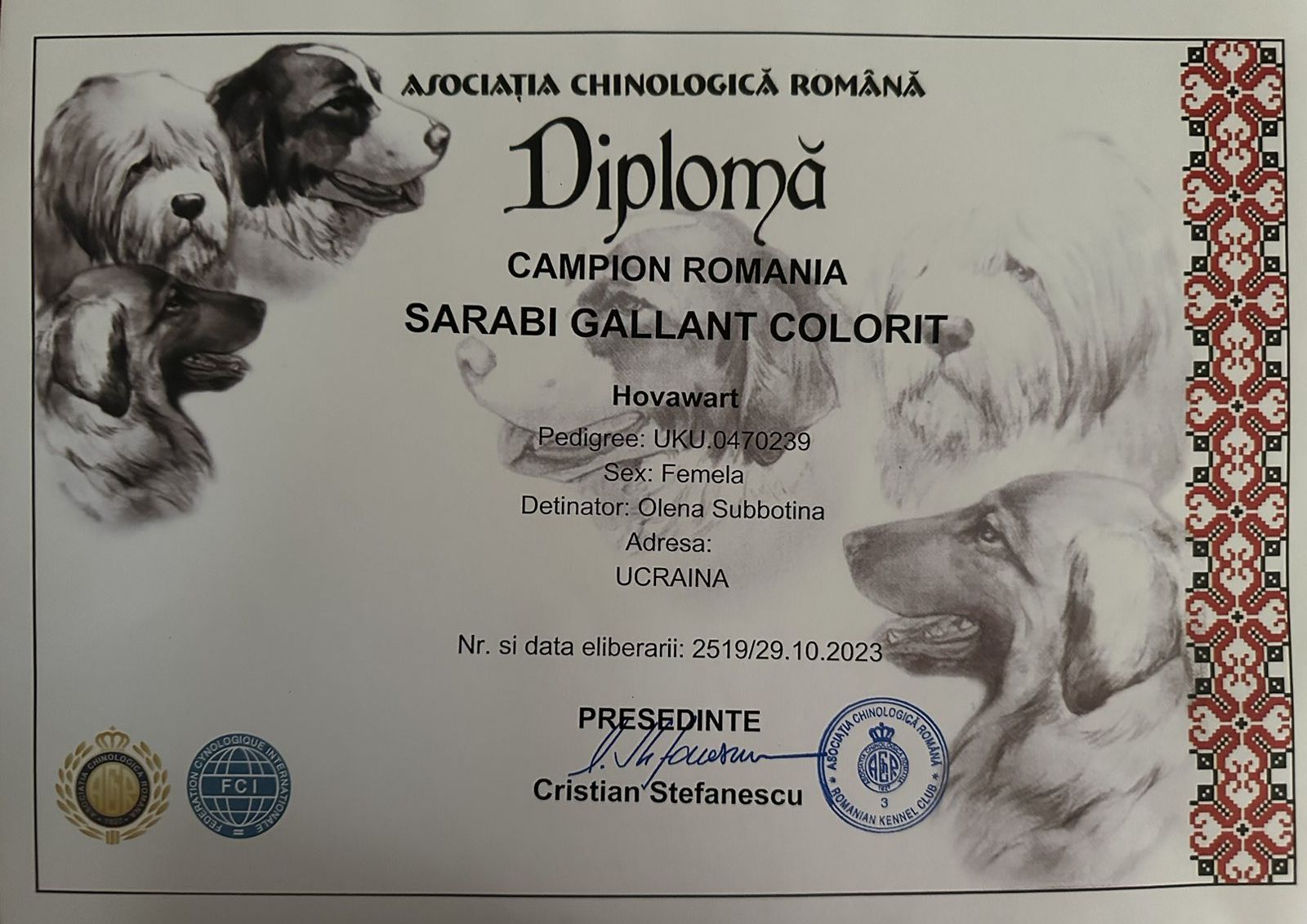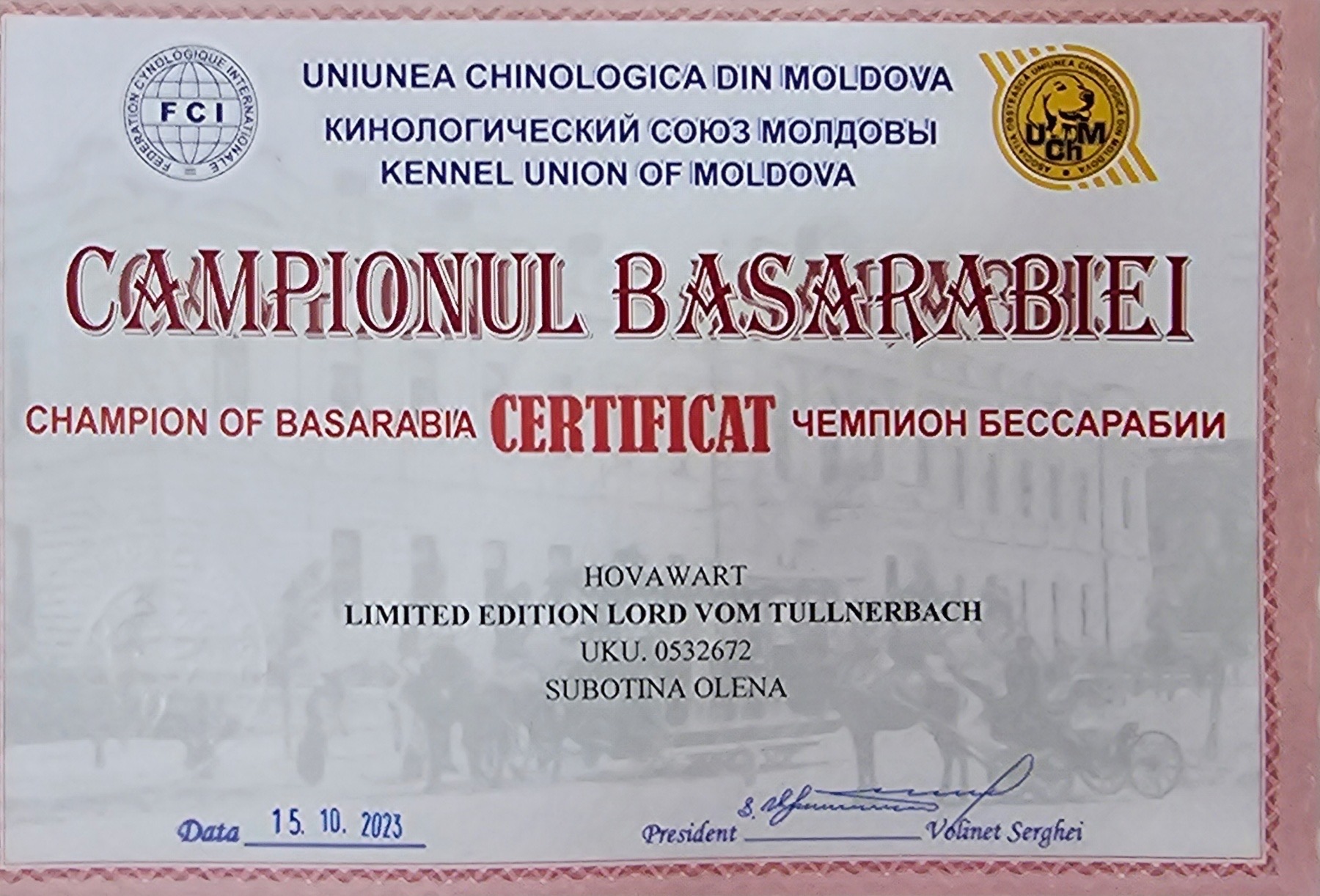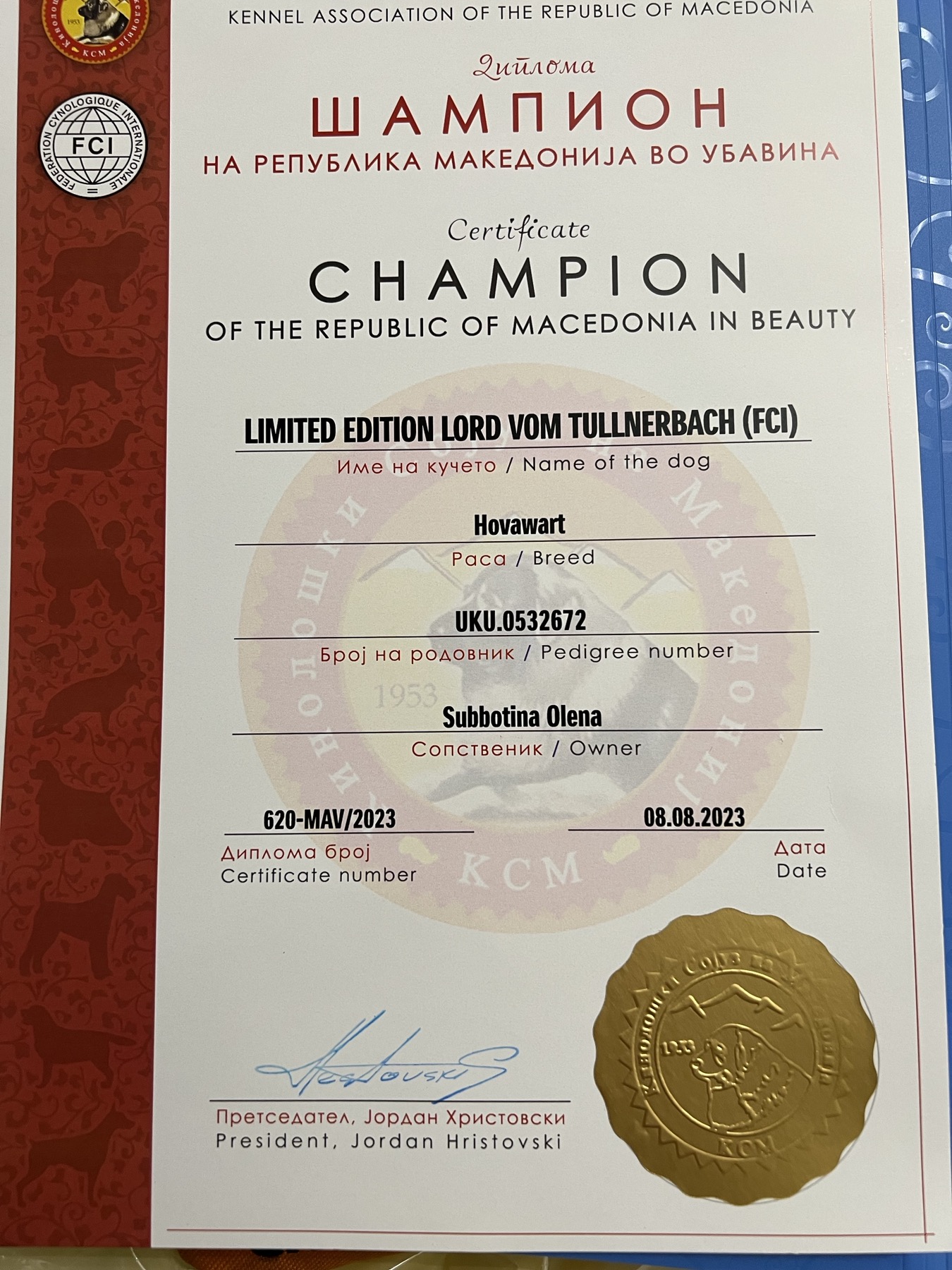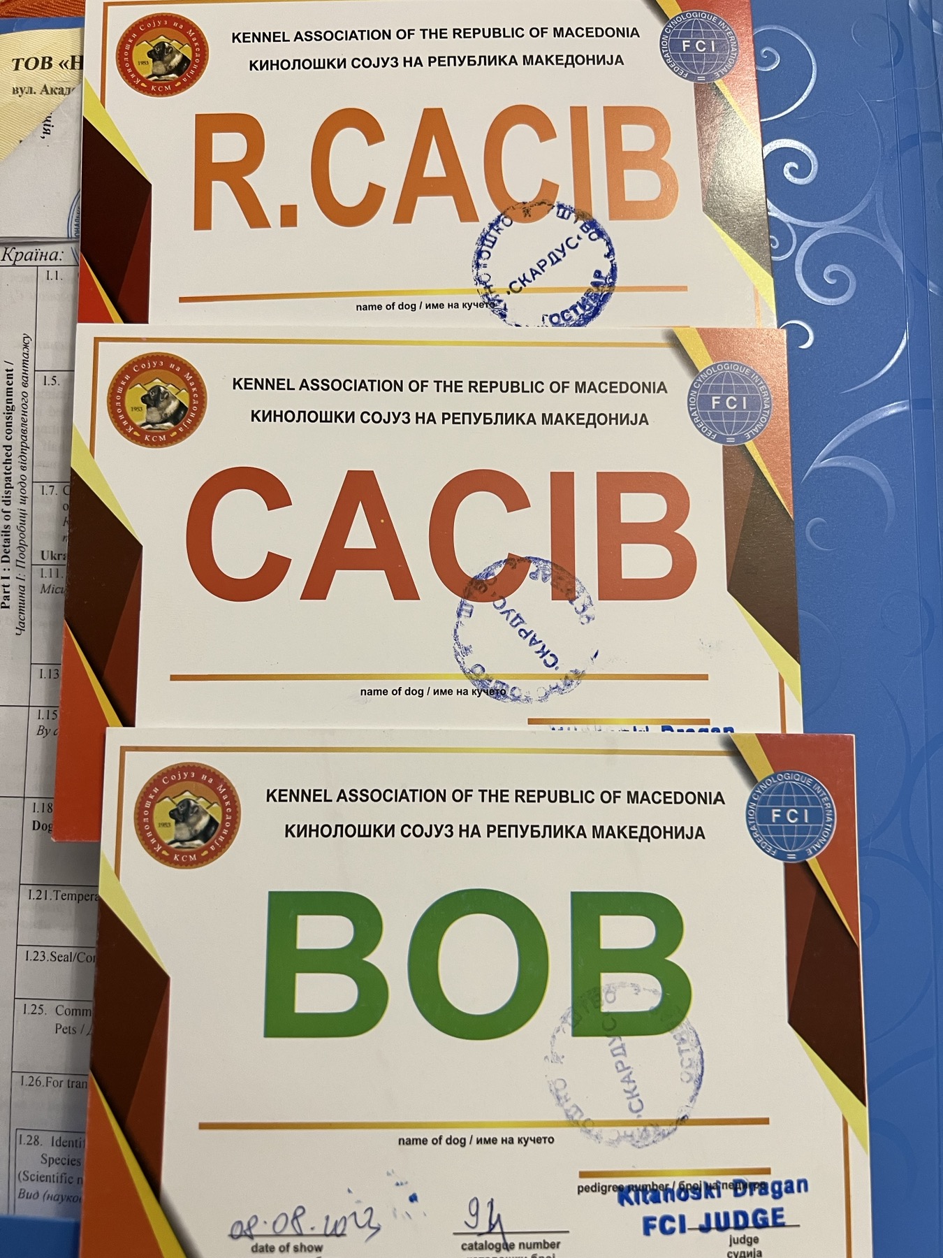 Де проходили виставки ранга САСІВ. Лорд вп'єть отримав гарні результати: САСІВ, Res.САСІВ, ВОВ. ЛОРД став Чемпіоном Македоніі. Наші вітання Лорду, кінологу Сергію Дегтярьову за чудовий виступ.